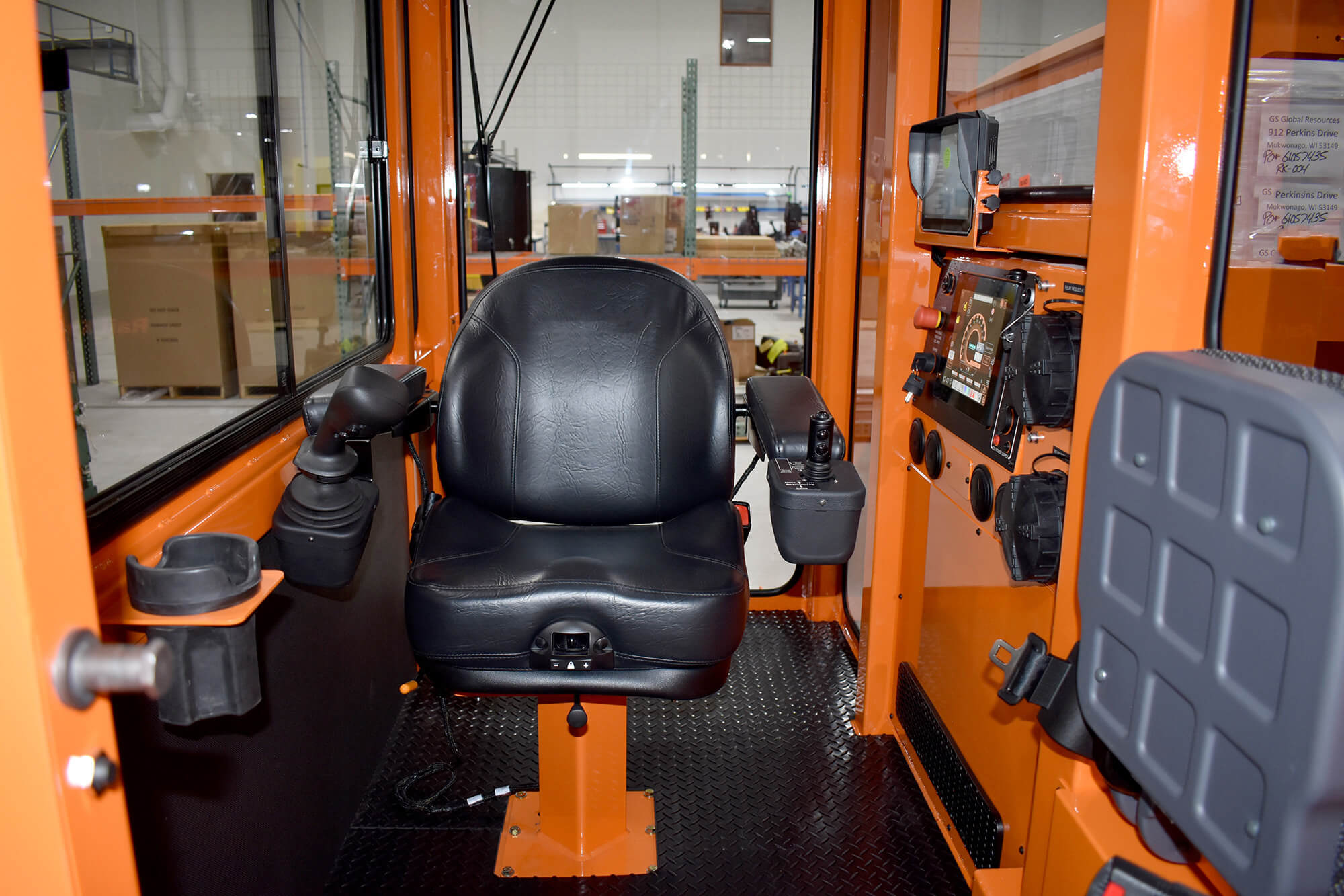 180 Degree Rotating Seat on a Steel Post Designed with Armrest Mounted Joystick Pods, Enabling the Operator to Perform All Primary Machine Functions With Joysticks.