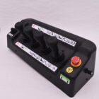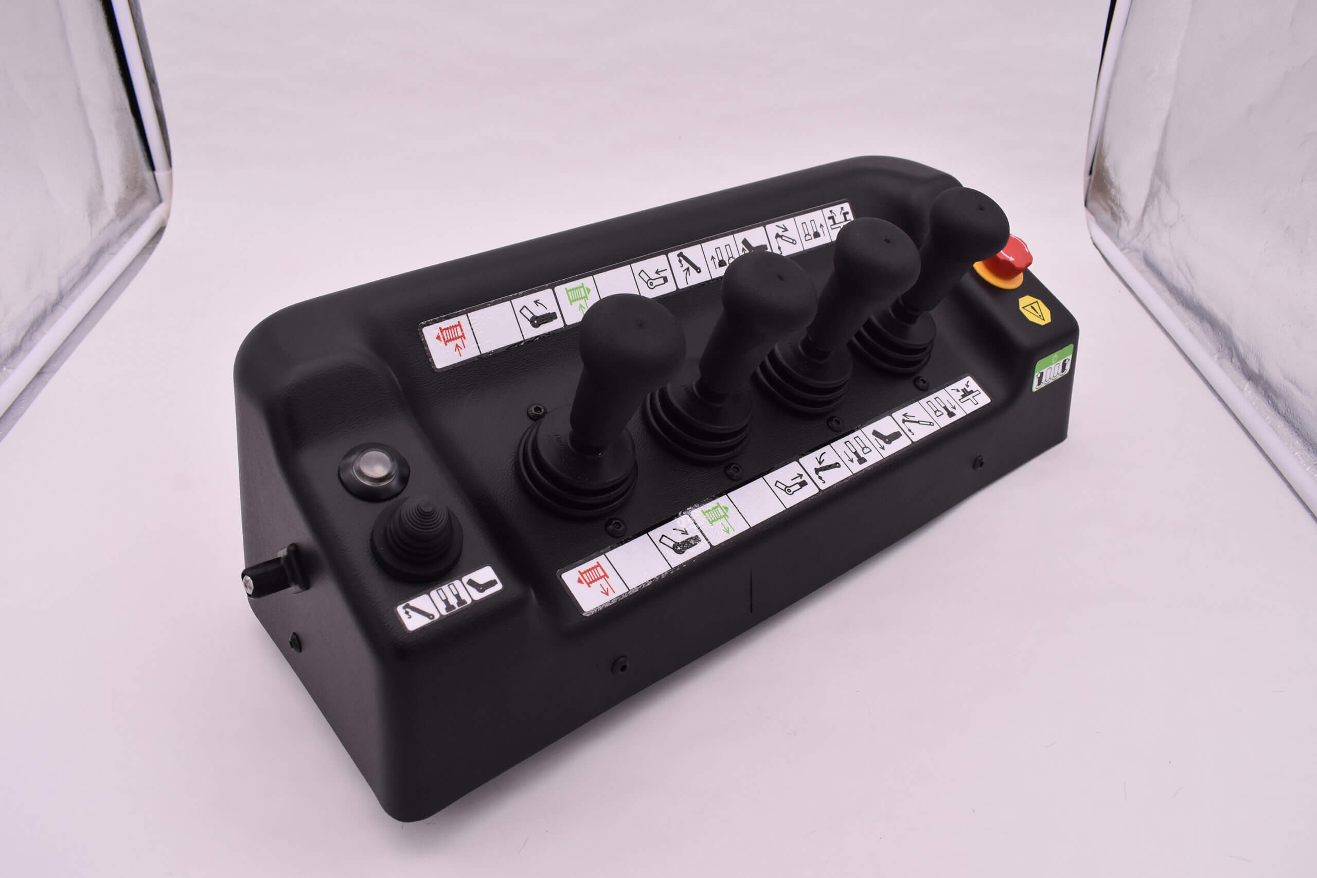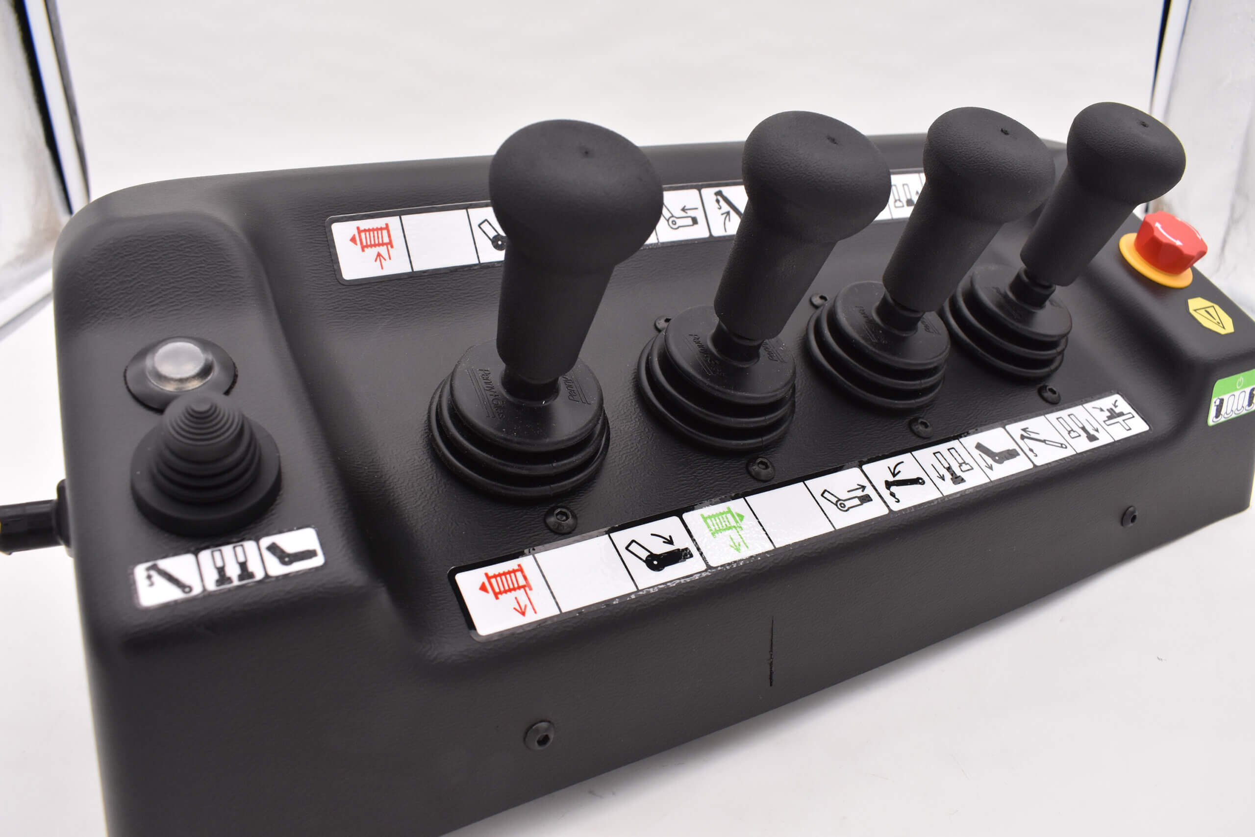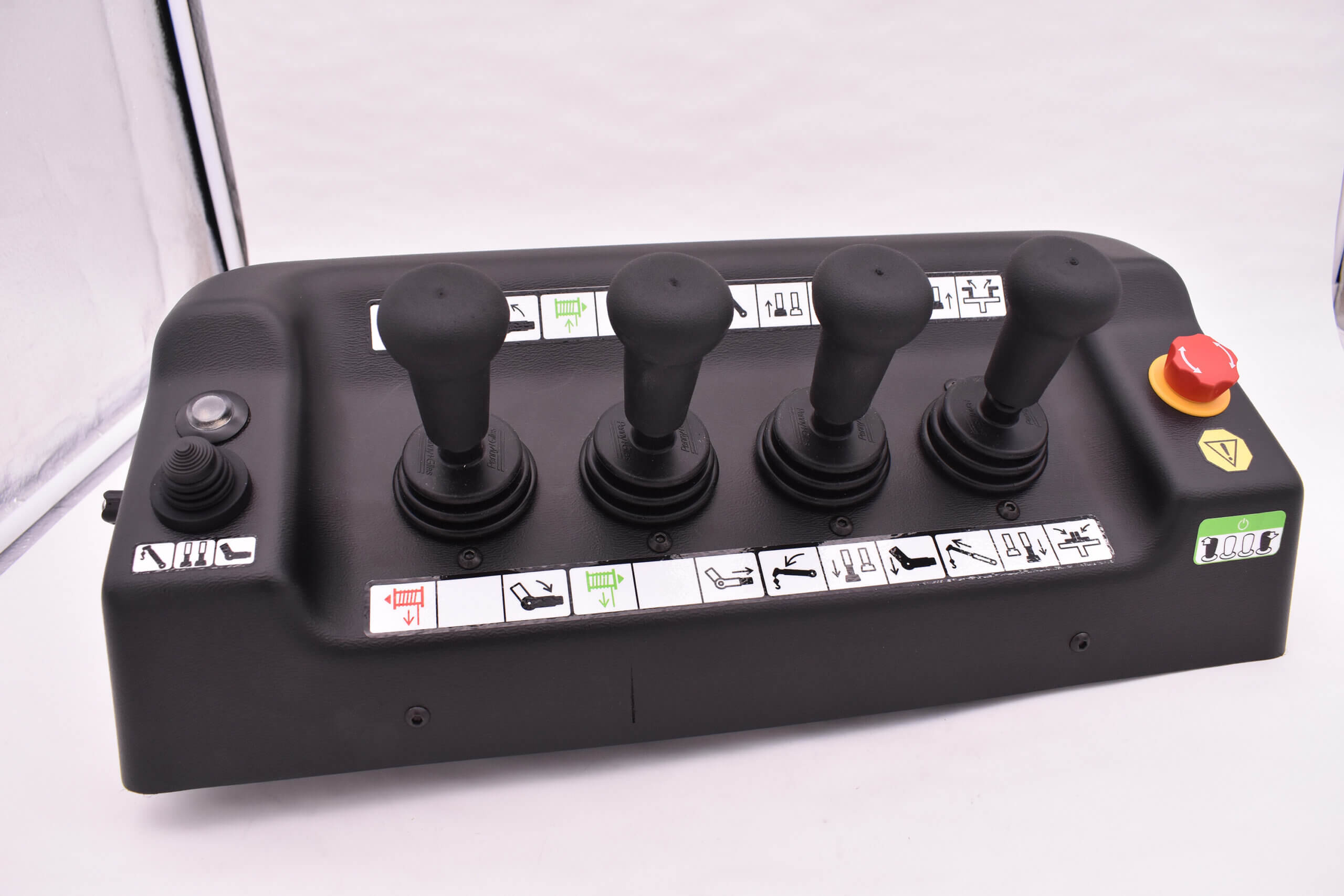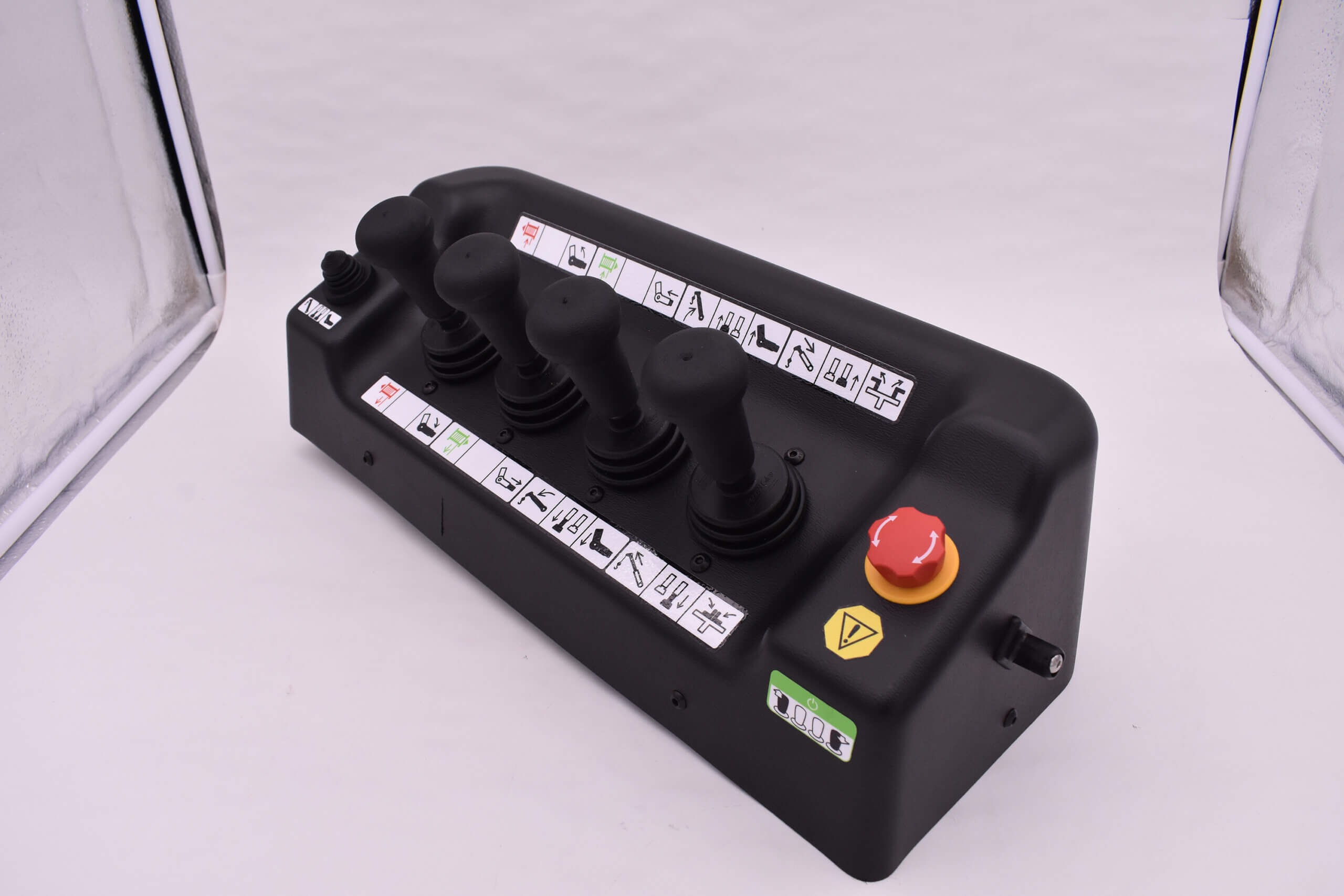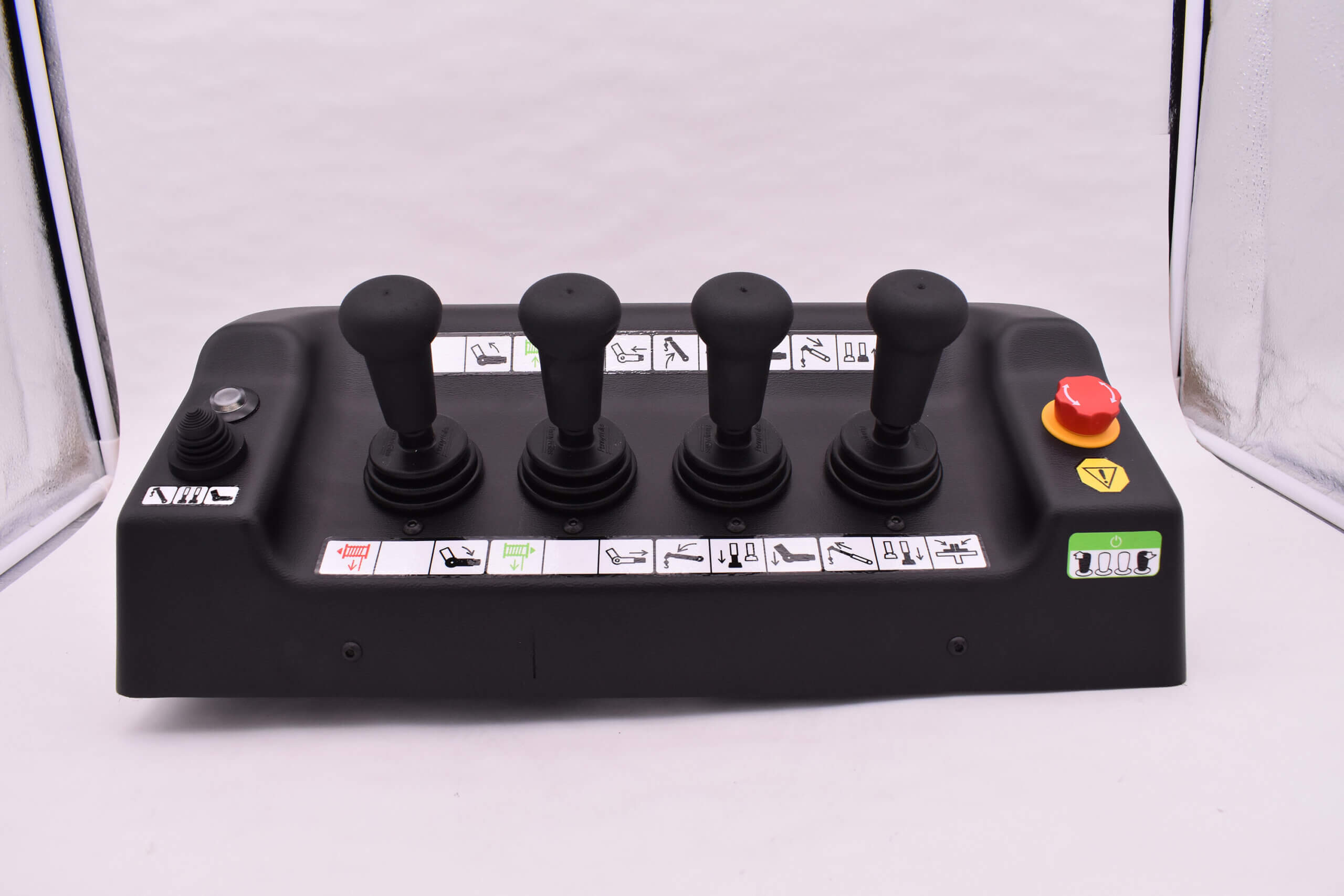 There are controls all over your machine and your operators need both control and brand consistency in order to best utilize the machine, as well as have complete confidence in it’s reliability. This rugged, highly compact operator console designed for tow truck application was designed for an OEM‘s machine line, to coordinate with 2 other versions, one large extended console, and another mid-size console. It contains 4 JC1500 joysticks and emergency stop.