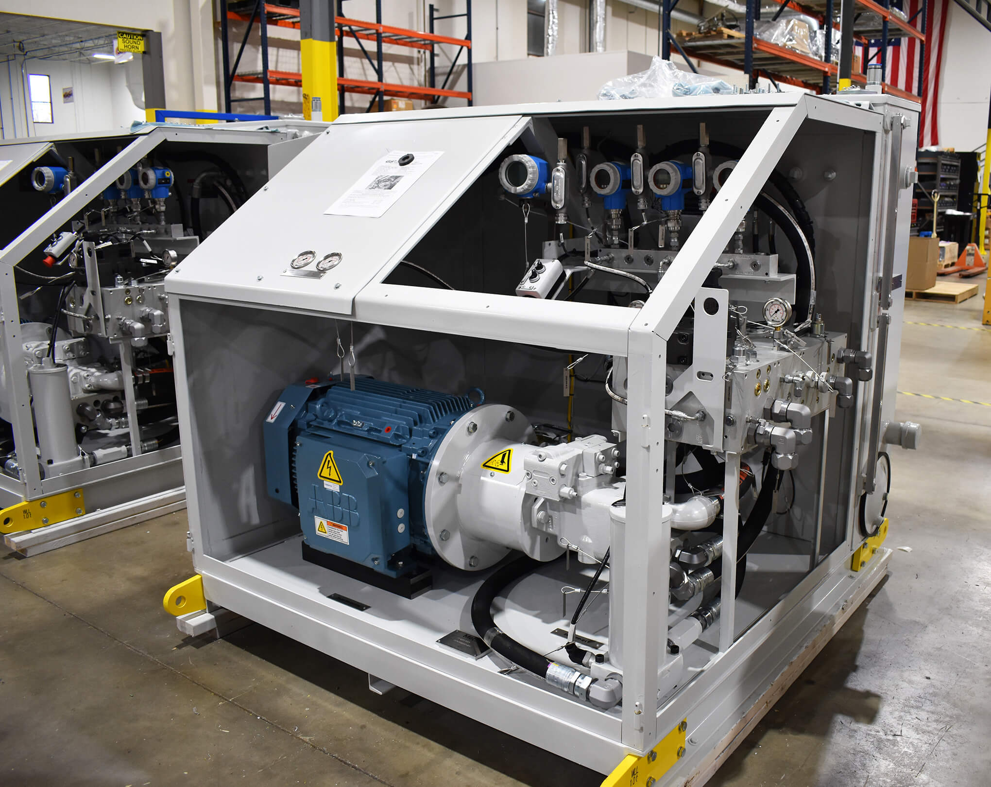 Take a 3D look at this custom, configurable hydraulic power unit. Components, including the motor, can be determined based on the final application or site needs.