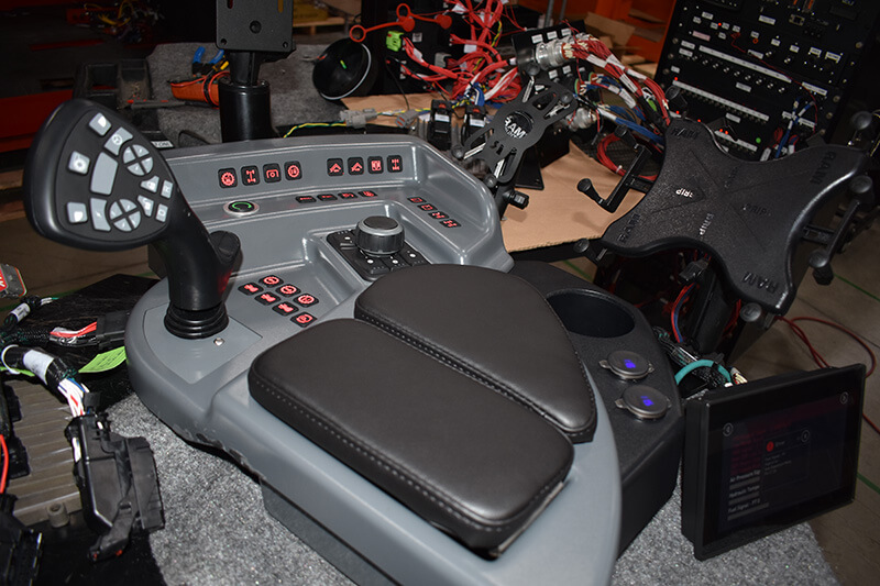 “With this armrest, the joystick, keypads, and other controls are on multiple levels, but we designed it so the operator doesn’t need to strain or stop working to access all of the controls.”