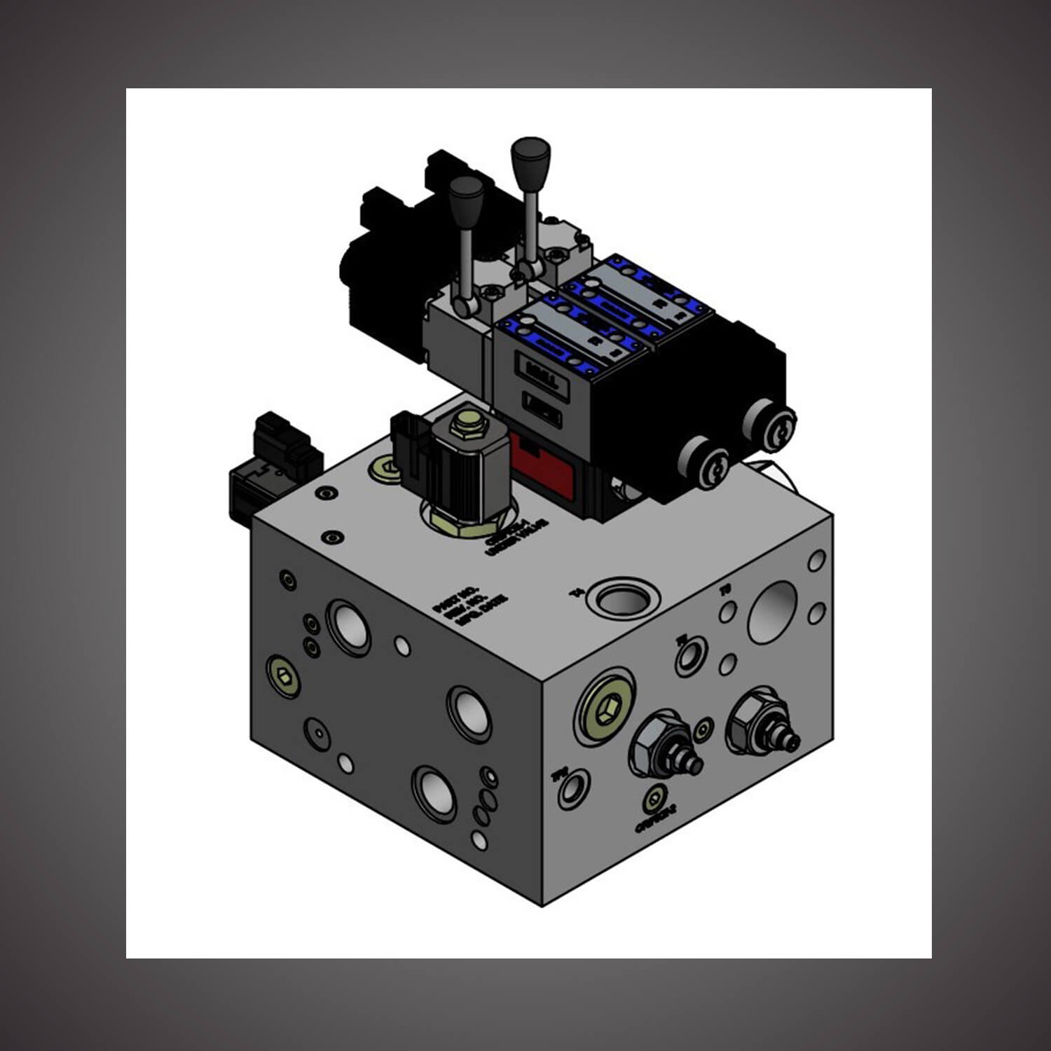 This valve solution features the K220LS Series Mobile Directional Control Valve. Made for high precision and metering performance, this valve assembly can be equipped with hydraulic or electrohydraulic spool actuators in any combination. Additionally, as seen in this example, it can be integrated with a custom manifold for additional functional controls.