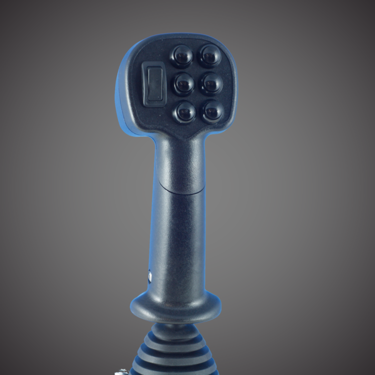 Designed to provide an ergonomic control solution within a small footprint, we offer a wide variety of rocker switches, keypads, thumb rollers, pushbuttons, single and multi-axis joystick controllers, and more.