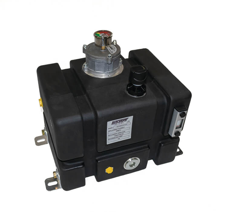 Tank Materials: High Density Polyethylene (HDPE) - Tank Volumes: 4 gal (15L), 7 gal (26L), 12 gal (45L), 18 gal (70L) or 25 gal (100L) - Return Line Filter: TNK4: AFT TNK7: MTB TNK12: ZT & GZT TNK18: ZT & GZT TNK25: RT & GRT - Max. Return Flow: TNK4: 25 gpm TNK7: 35 gpm (135 L/min) TNK12: 40 gpm (150 L/min) TNK18: 40 gpm (150 L/min) TNK25: 75 gpm (284 L/min) - Breather: 3 µ phenolic resin impregnated paper element - Suction Strainer: 100 µ wire mesh SAE20: 20 gpm SAE24: 30 gpm - Weight of TNK: TNK4 (AFT4): 11.5 lbs TNK4 (AFT8): 11.5 lbs TNK7: 16 lbs (7.3 kg) TNK12: 21 lbs (9.7 kg) TNK18: 33 lbs (15 kg) TNK25: 45 lbs (20 kg) - Element Change Clearance: TNK4 (AFT4): 5.3” (134mm) TNK4 (AFT8): 8.6” (219 mm) TNK7: 5” (127mm) TNK12: 10” (254mm) TNK18: 10” (254mm) TNK25: 9.5” (241mm) - Filter and Element Selection: For proper filter and element selection, information and pressure drop calculations, please refer to the individual filters (MTB, ZT, GZT, RT & GRTB) sections in the Schroeder Hydraulic and Lube Catalog (L-2520). - Environmental